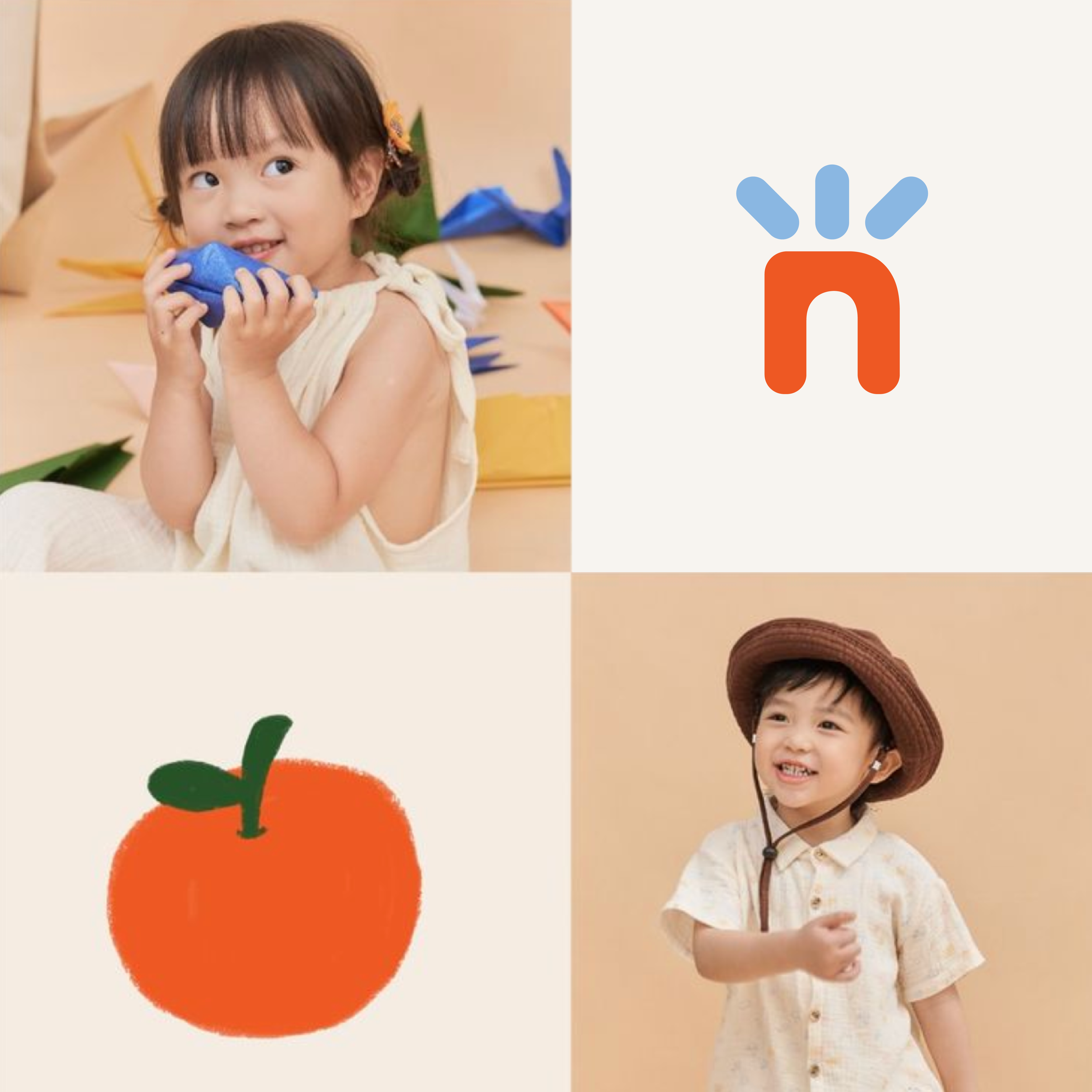 The mark reimagines 光 as a soft, modern "N", warm enough for a uniform, bold enough to stop parents in the street. Playful without being childish. Premium without being cold.